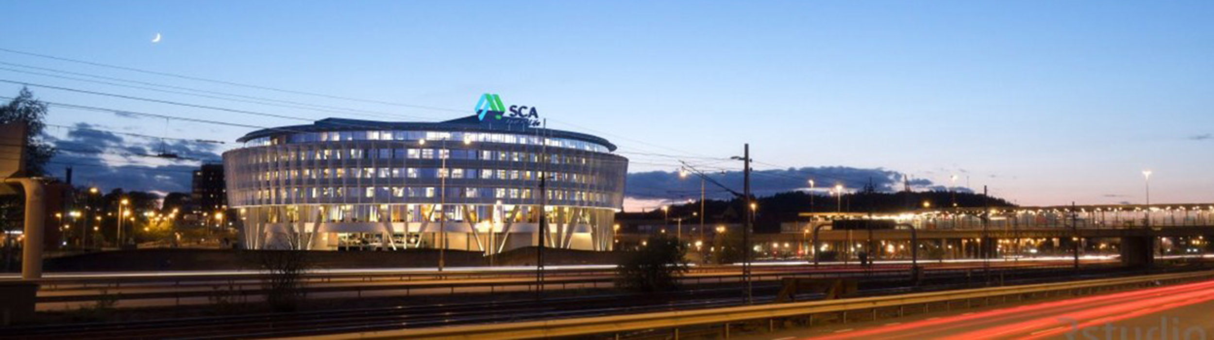 SCA- huset i Mölndal, numera essity- huset är beläget precis intill E20 strax söder om Göteborg. En byggnad som är mycket iögonfallande med sin runda arkitektur och som dessutom agerar slutstation för spårvagnen i botten av byggnaden.